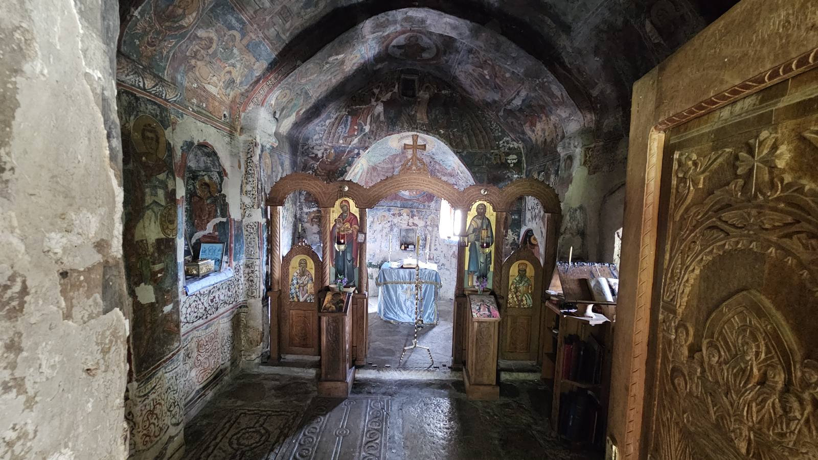 Монастырская церковь Успения Пресвятой Богородицы является простым однонефным зданием с боковыми приделами и деревянным притвором. Она была расписана в два этапа — сначала в 1470 году, а потом в 80-ые годы XVI века. Сегодня эта церковь является единственным храмом, среди монастырей Скадарского озера, с сохранившимися оригинальными фресками.